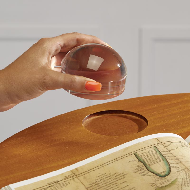 This Product Ships Free. A revolving book stand for your Carousel Bookcase. Here’s the crowning glory for your Carousel Bookcase configuration—a beautiful rotating wood book stand, with a ledge to hold your book at an optimal reading angle, a storage shelf below and an acrylic dome magnifier in its own nook. Start with the , stack two (all available separately), then top with this Book Stand. The Book Stand also works by itself on a desk or table, without the rotating effect. The (available separately) includes the Base, two Book Shelves and the Book Stand—save 25%.