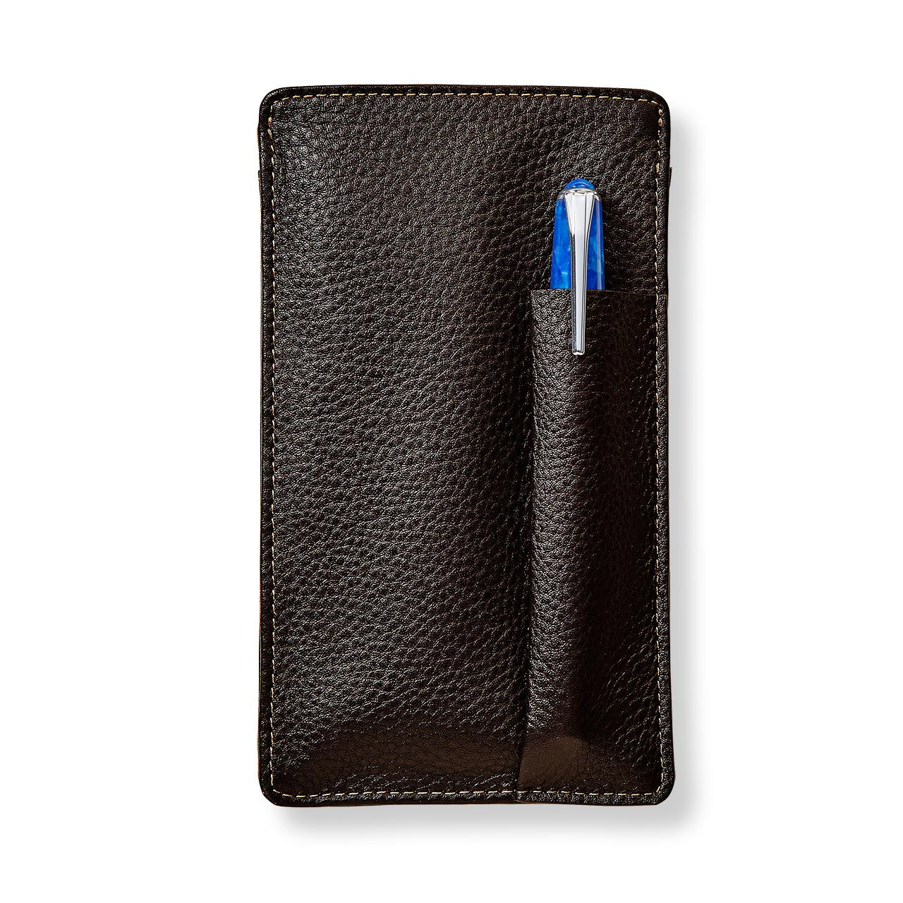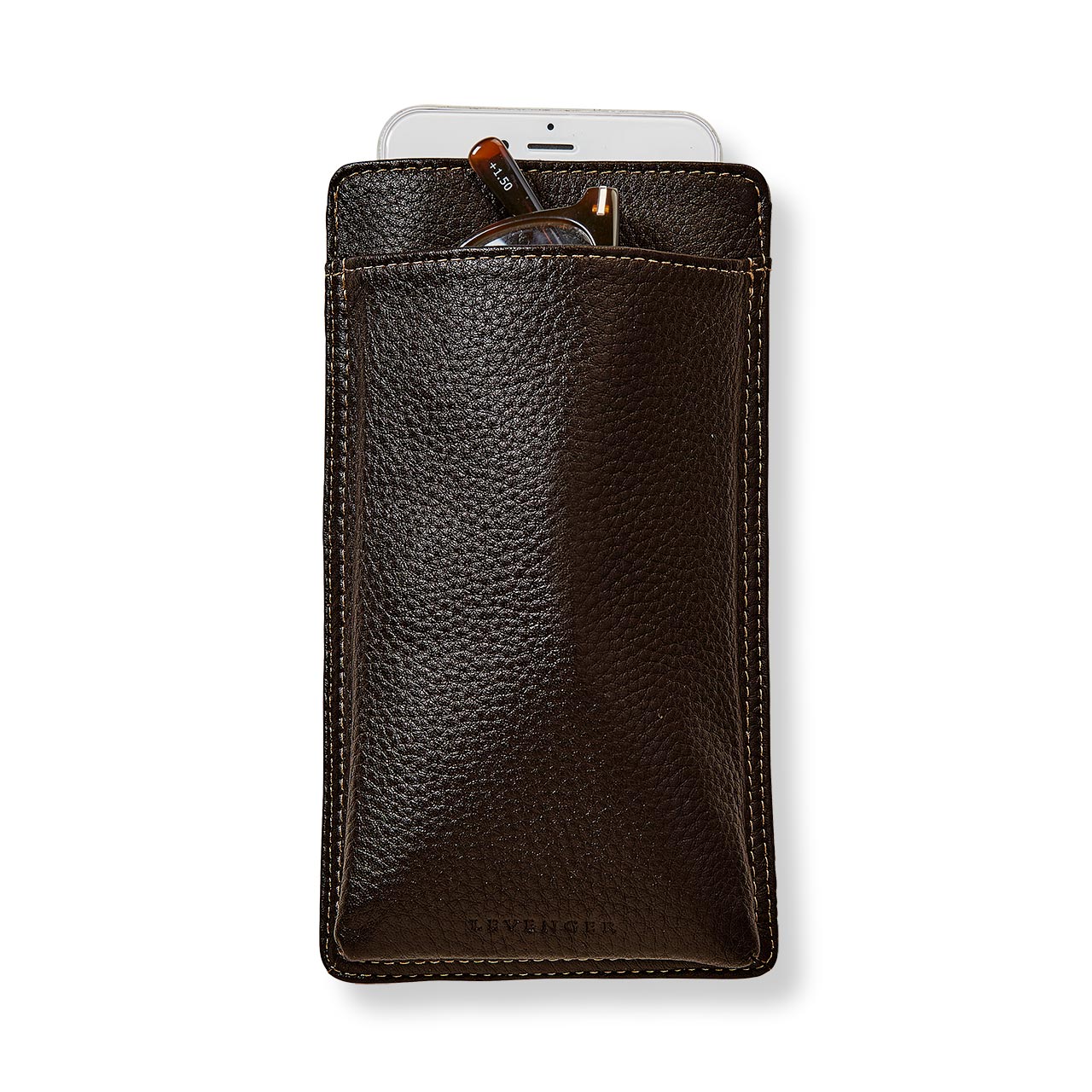 Glasses, phone, and a pen–that's the triad that makes up the everyday carry for some Levenger customers, and hence our designers developed this clever case. A phone slips into the center sleeve, lined with protective microsuede. Slip your specs on one side, your favorite traveling pen on the other. Your trio is ready to tour. Also available in .