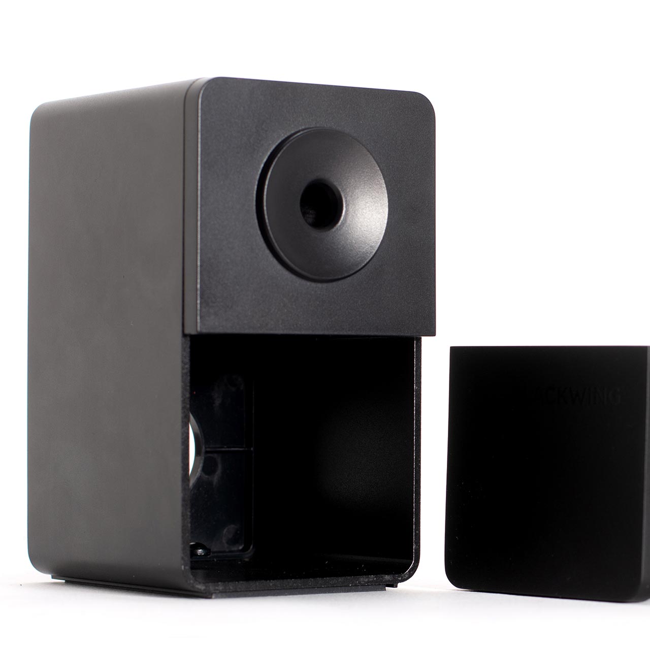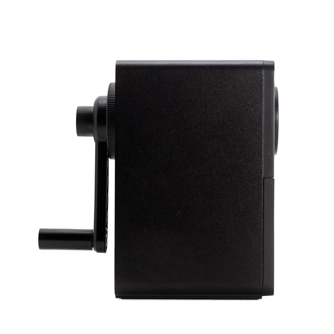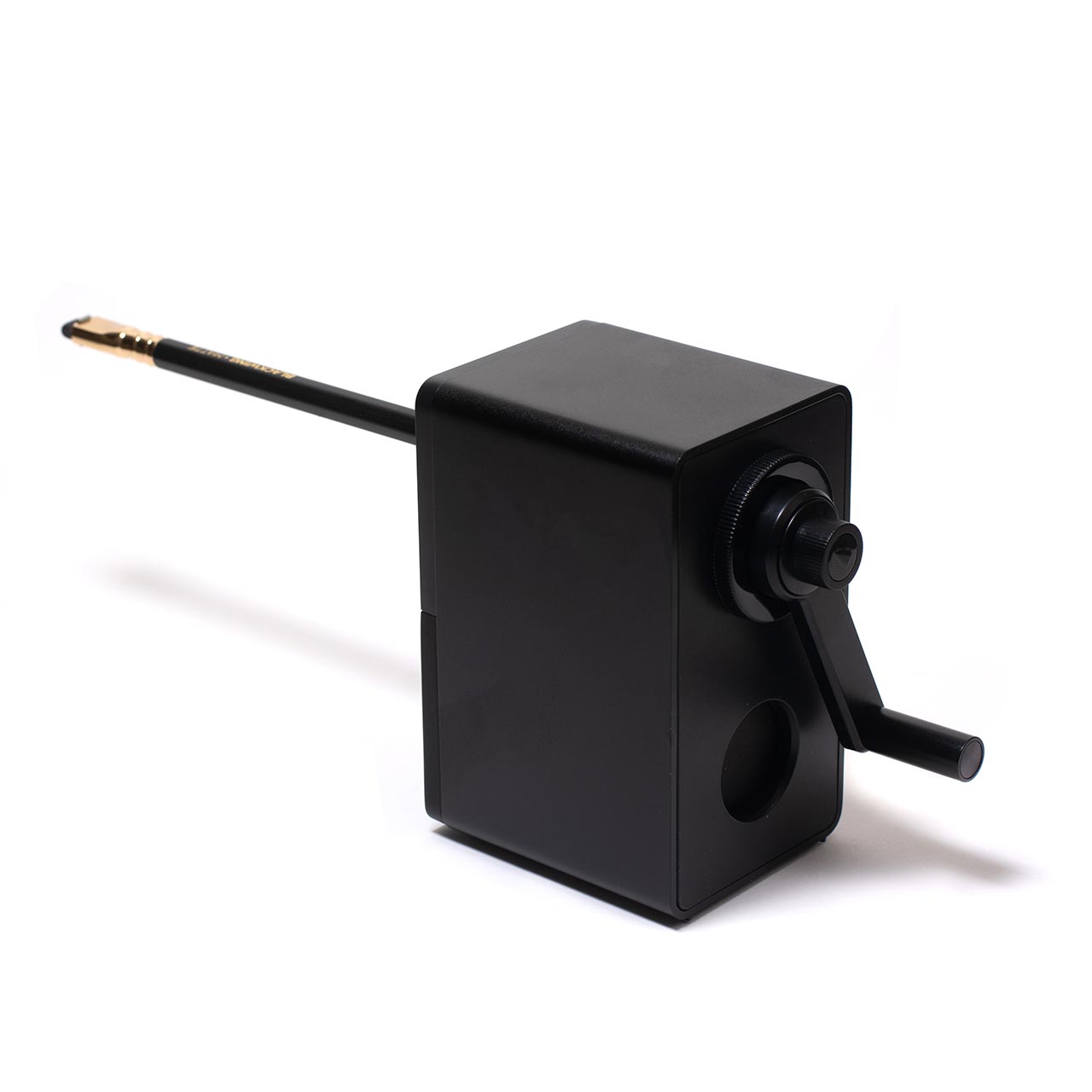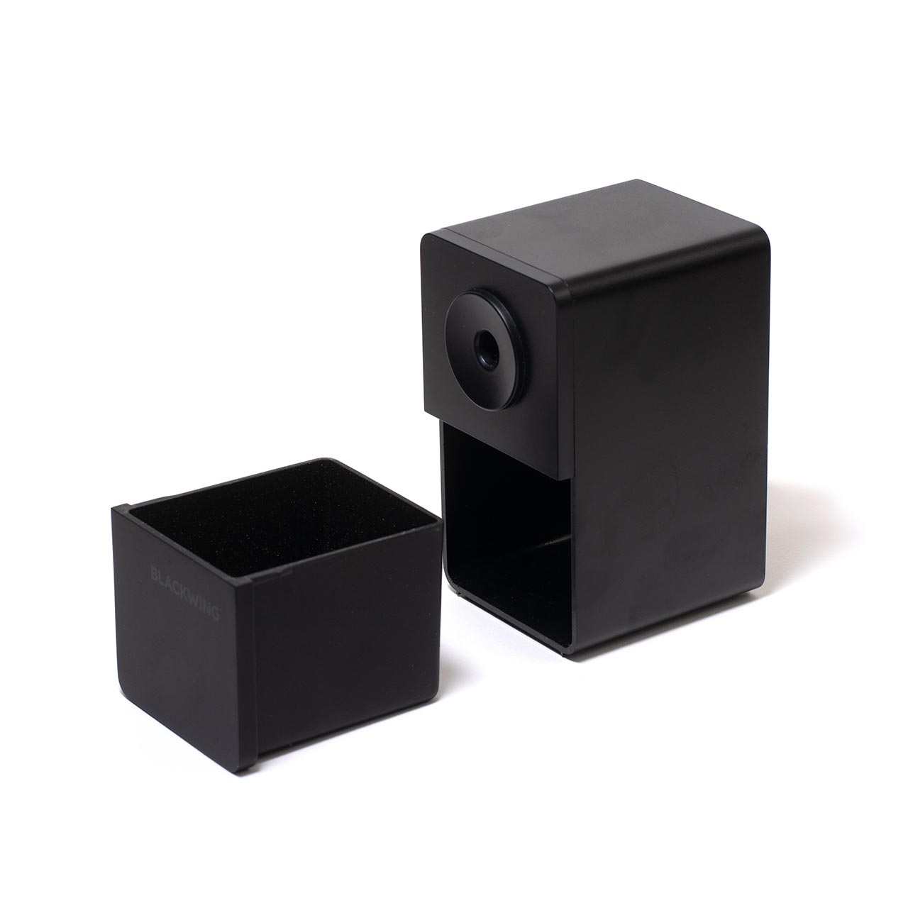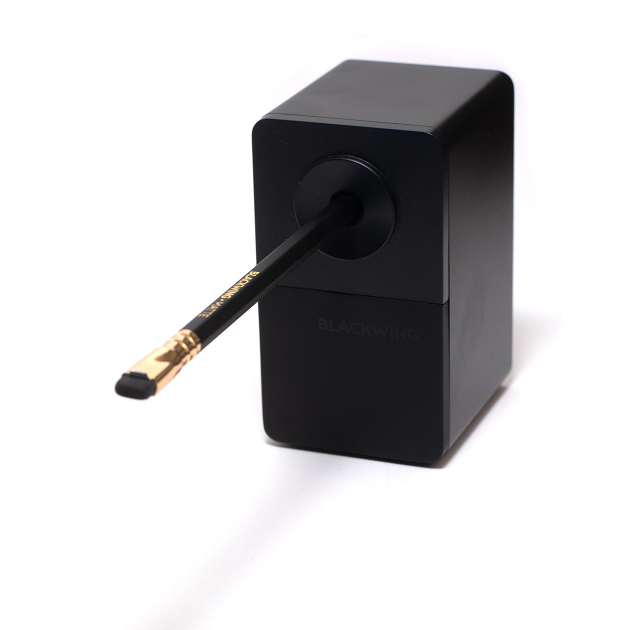 The Blackwing Desktop Pencil Sharpener uses a helix blade to sharpen your pencils to perfection. The dial on the crank allows you to adjust the point from long and curved to short and blunt. Its unique sharpening system retracts the pencil automatically without scuffing the finish, and it includes an automatic brake to prevent over-sharpening and wasting the lead. The sharpener is cased in a durable matte black metal and polymer shell that looks sleek and feels substantial. It also has a drawer to empty the shavings that locks into place with a satisfying click.