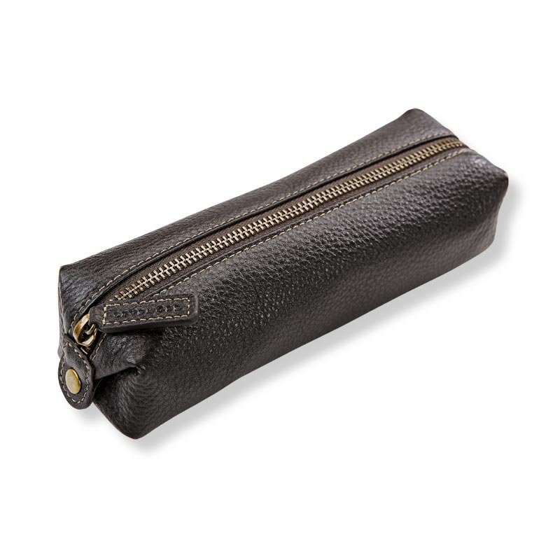 Bomber Jacket leather pouch for pens and small writing tools. Give your pens extensive coverage with our pen pouch, crafted in durable pebbled mocha Bomber Jacket leather. It can hold several of your favorite writing instruments, with space for ink refills, erasers and other small items. Slip into a brief, bag or folio and keep pens handy and ready to go.