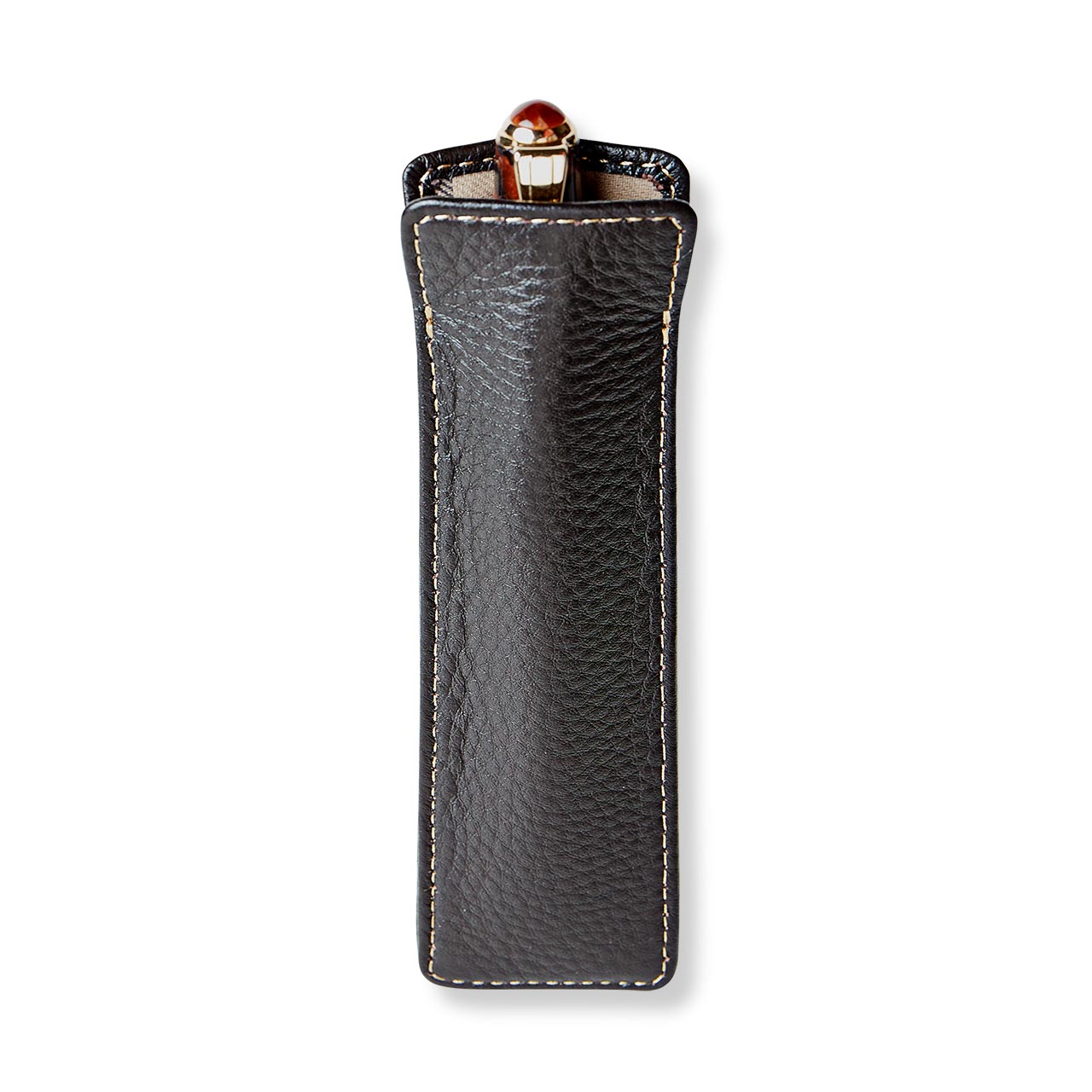 Instead of hunting for your favorite pen at the bottom of your bag, use this elegantly slim and flat leather pen holder, crafted to last in our premium full-grain Bomber Jacket leather. This leather pen sleeve lined in khaki twill protects your precious pen from nicks and scratches when you’re out and about, and makes it easy to find.