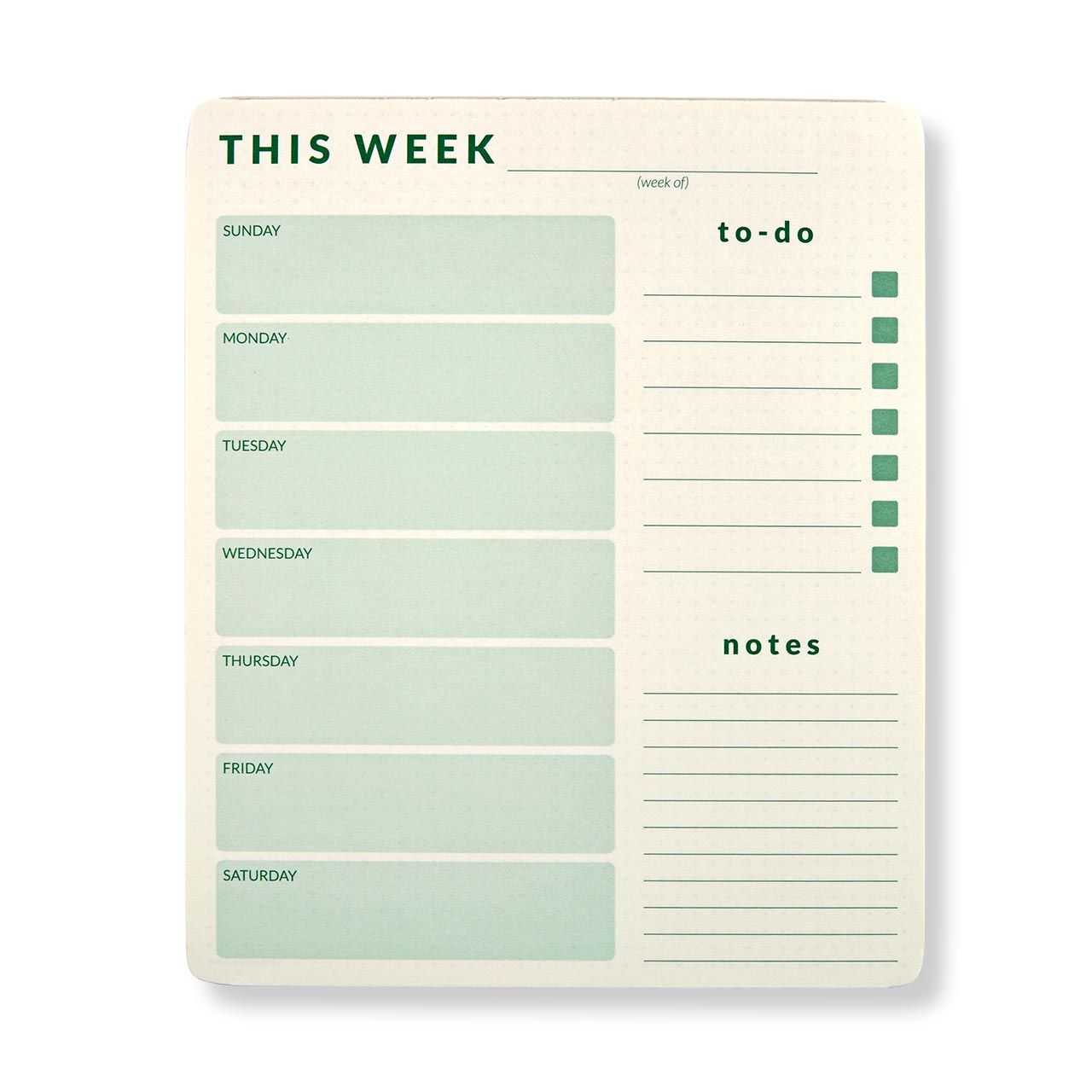 Plan out your days, weeks and months to the letter on these handy desk pads, undated so you can start anytime and printed in soft shades of green on warm cream paper. The Daily pad has space for priorities, notes, reminders and to-dos. The Weekly pad has space for planning each day of the week, a to-do checklist and notes. The undated Monthly pad has a Sunday-Saturday layout.
