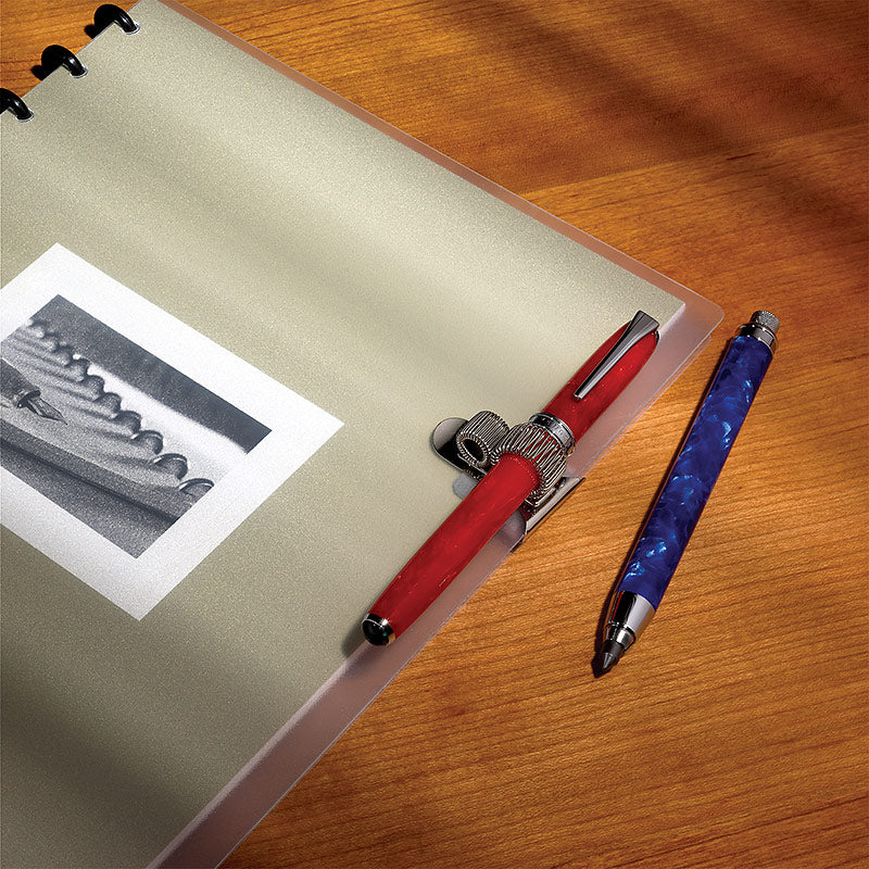 A set of pen holders for your notebooks. Stop searching for your writing instruments. Keep two pens or pencils handy on your Circa® translucent notebook with our Double Barrel Pen Clips.