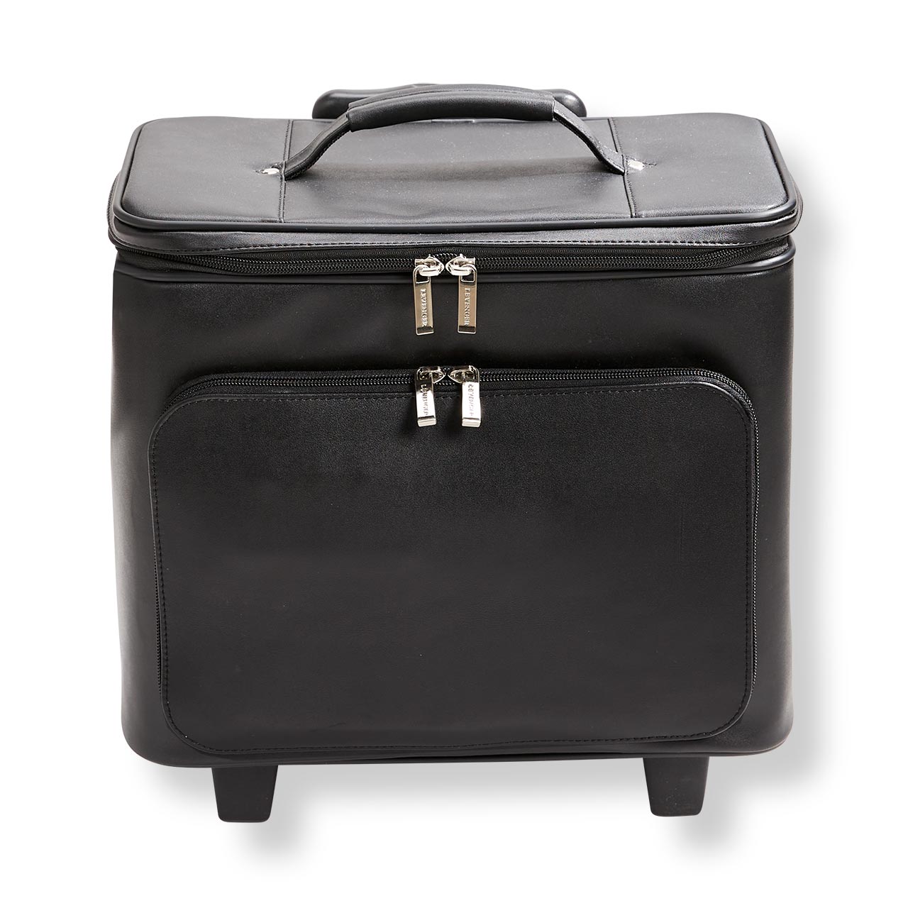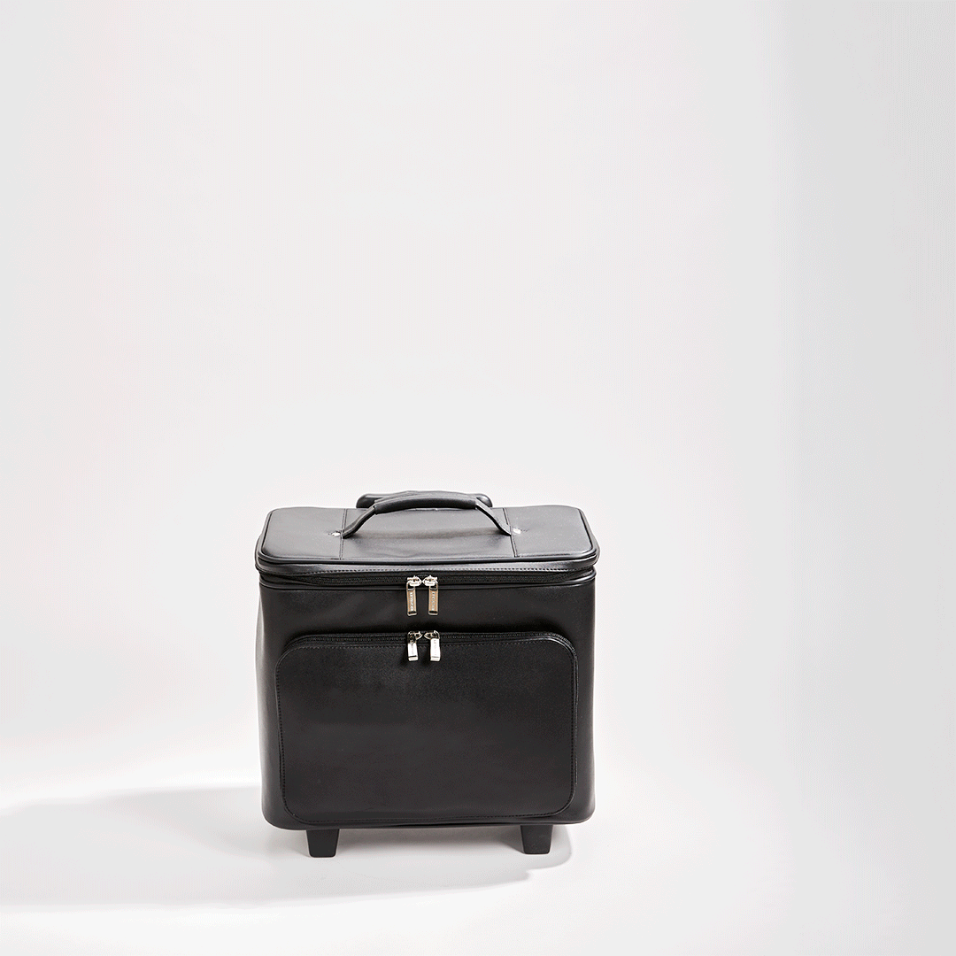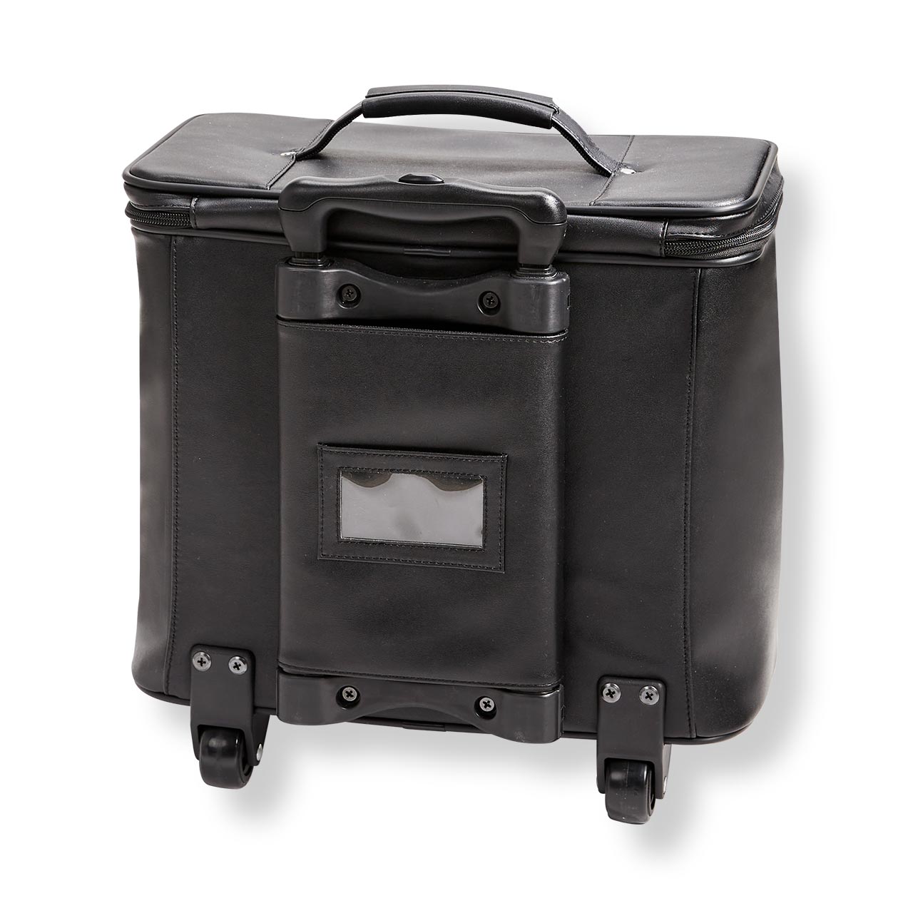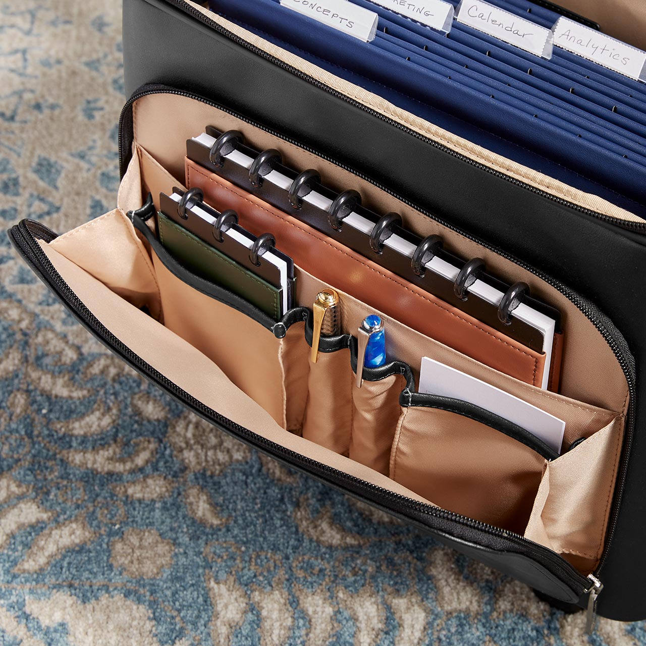 Get your act together and take it on the road with our zip-secure Portable File Tote on wheels, built for longevity in our premium LevTex™ leather alternative. Inside this compact mini rollaboard is room for your laptop and files, plus a wealth of storage and pocketing (see details below). The telescoping handle extends and retracts with the push of a button and the dual-wheel system ensures smooth and seamless perambulation.