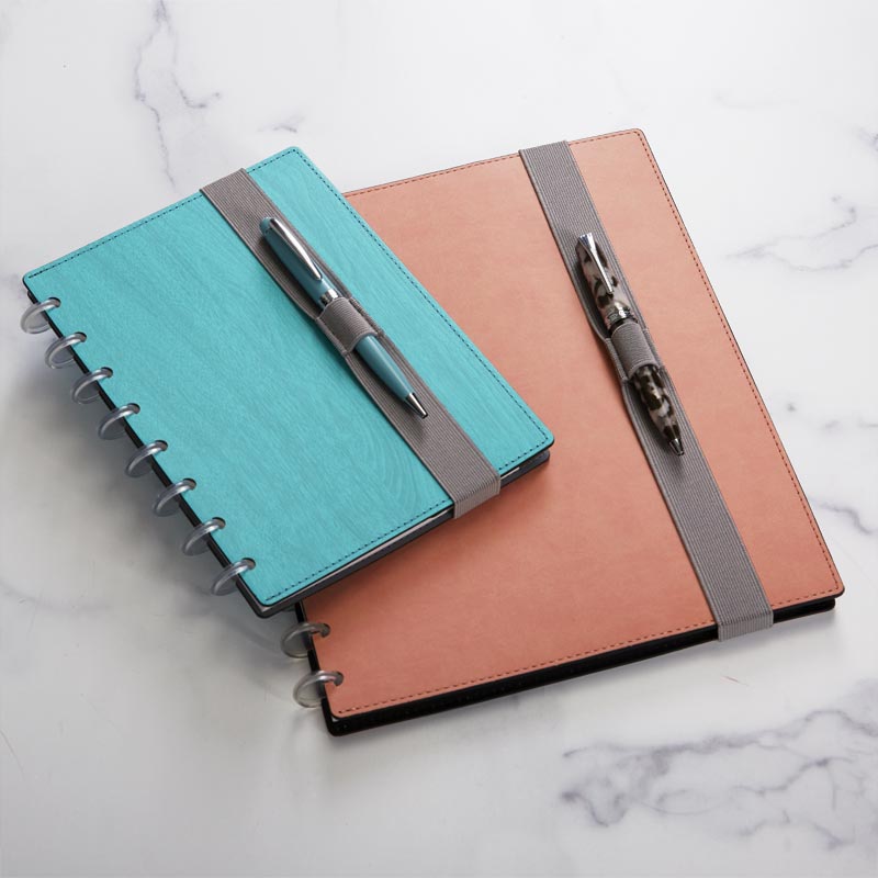 An elastic bookmark and pen holder for book or binder. Protect your precious text with our colorful Notebook Belt. This durable elastic strap keeps your book, journal, agenda or binder securely shut. Always keep your pen nearby—the Notebook Belt is equipped with an elastic pen loop that can fit any writing utensil up to 1/2-inch in diameter.