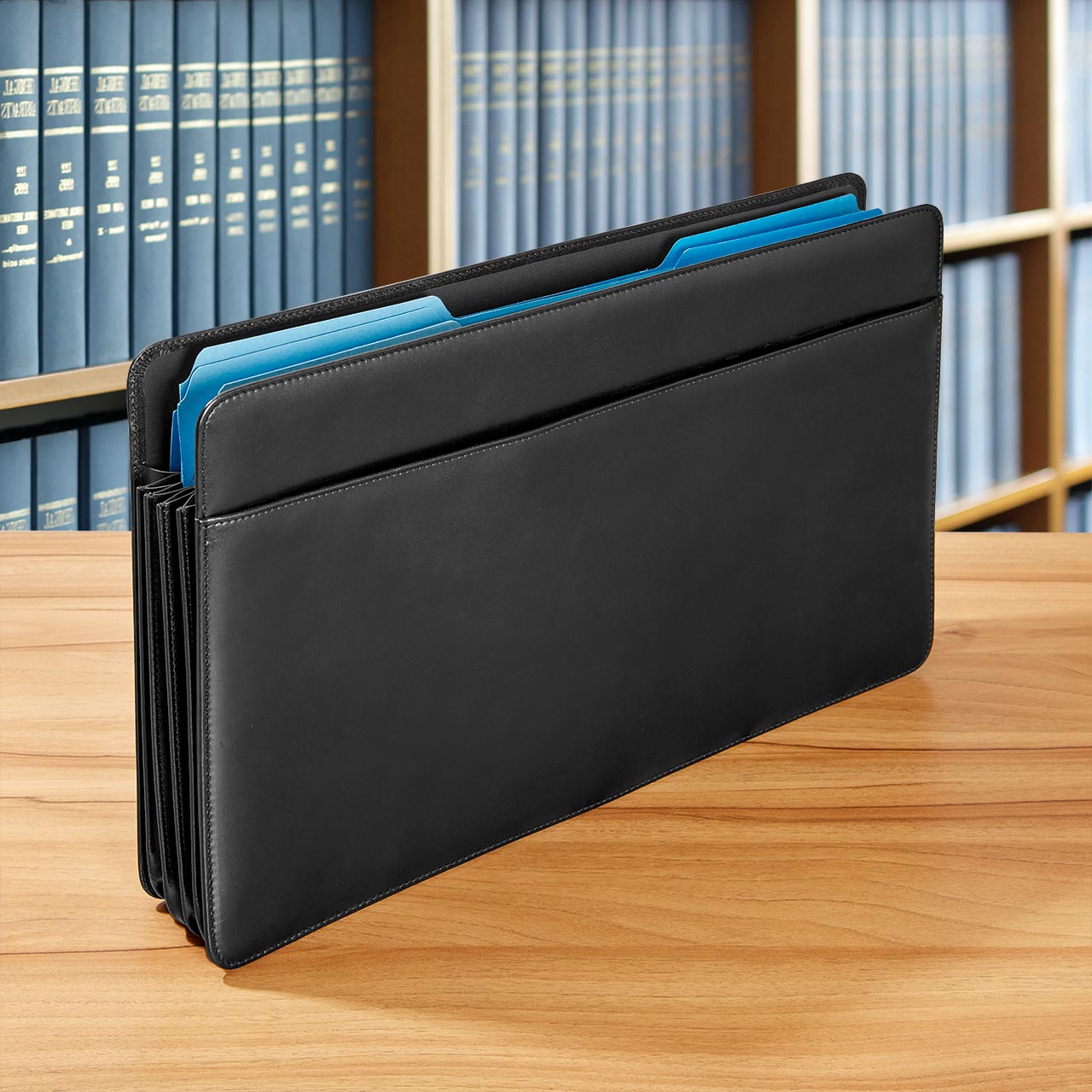 Our durable and elegantly professional leather accordion file in legal size. Upgrade your files to leather with this durable full-grain leather accordion file. Unlike the paper version, which wears out, the Leather-Rope® will wear beautifully and last for generations. A Levenger 35th Anniversary Heritage Product.
