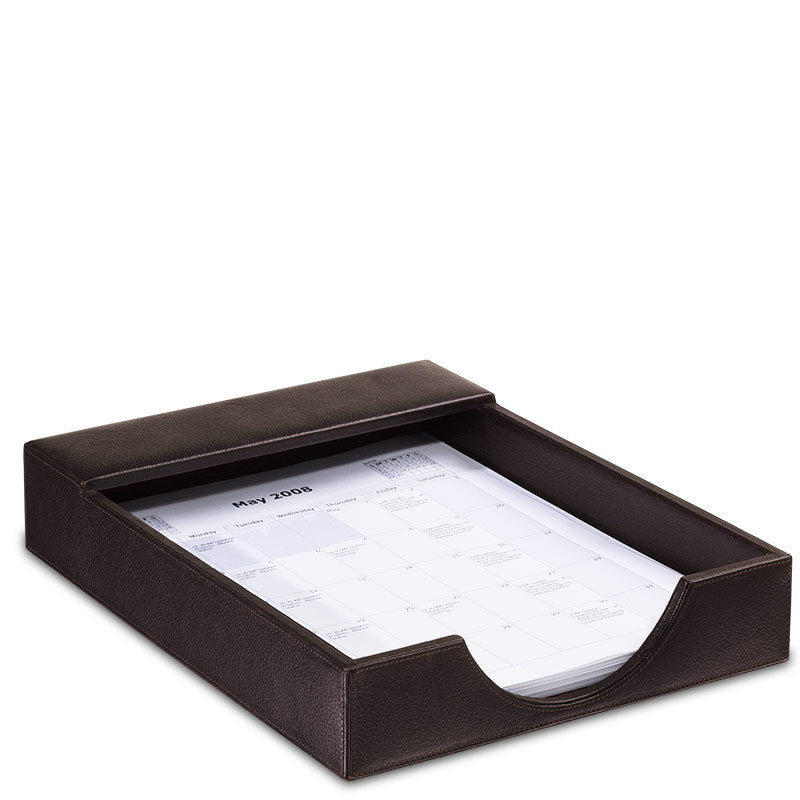 Full-grain pebbled leather desk tray and inbox. Bomber Jacket flight plan: from rugged wear to deskware. Our intrepid Bomber Jacket leather, the same used in the jackets of World War II fighter pilots, makes a durable letter box and inbox.