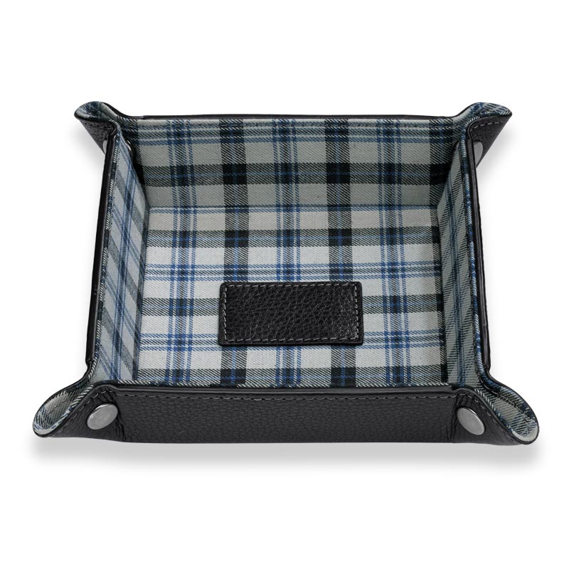 A foldable leather desk tray for travelers. Here’s a valet tray that folds and snaps to keep you organized wherever you go. The Bomber Jacket Snap Tray holds small accessories for your desk or wherever you choose. It lays flat for easy storage or travel when you unfasten the snaps. Add a monogram for a personal touch.